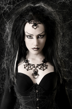 It’s very rare that I come across an item of adornment that I believe is truly unique. There are many inventive adaptations of classic designs and techniques, but to find something that seems to break into a new form of creation is uncommon in any industry, let alone alternative fashion. It was at Wave Gotik Treffen in 2005 (a veritable mecca of all things goth) that I happened across a small stall with a single table which belied the splendour it held. Stunning, ornate and intricate jewellery, sparkling under the hall lights as if to demand I take them all home. I think it was only a couple of years later that I managed to make my first purchase which was of course a set fused with spidery goodness (a well known weakness of mine ;) and then learnt of a competition the designer was running to win a one-of-a-kind piece. I had to enter and with luck (and the help of the fabulous mistress of the lens Taya Uddin) I won. Since then I have amassed quite a collection and have formed a wonderful symbiotic relationship with the lady behind the splendour. In this I consider myself to be very lucky, to be able to inspire and in turn be inspired by some of the most wonderfully creative people.